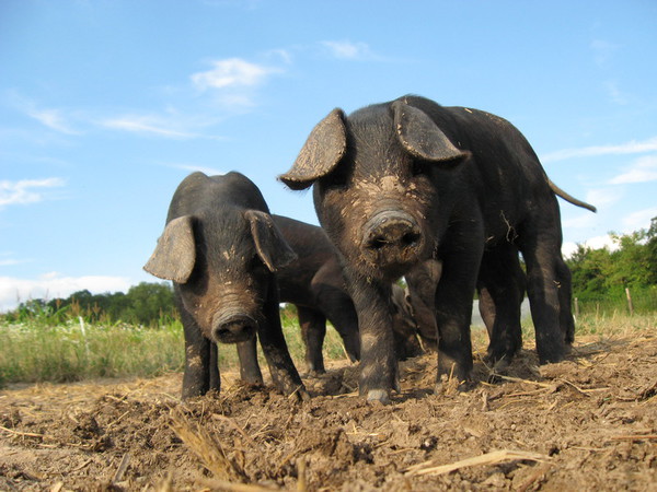 Die Futtermittel für die Freilandschweine sind komplett gentechnikfrei.